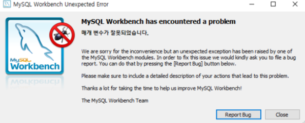 MySQL Workbench를 재설치하면 됩니다.