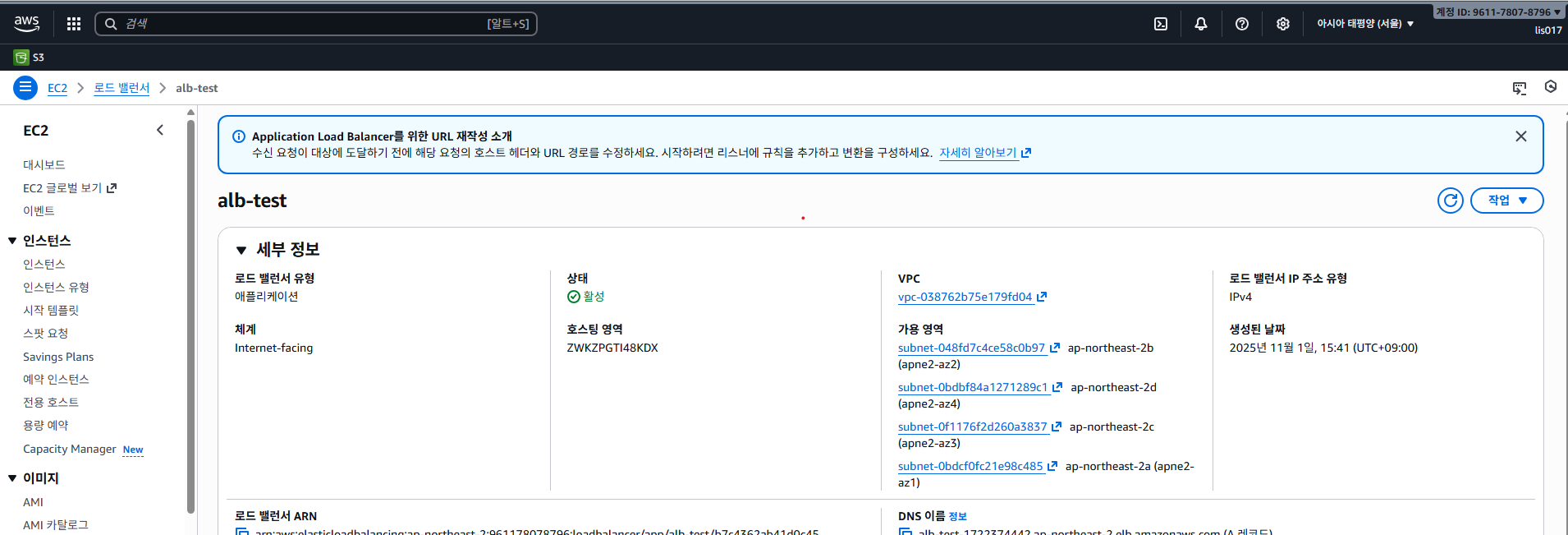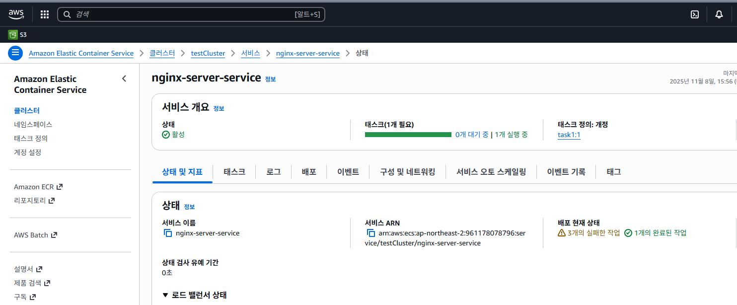 6.ecs - 클러스터 - 서비스 - 로드밸런서 - DNS이름을 검색창에 검색하면?